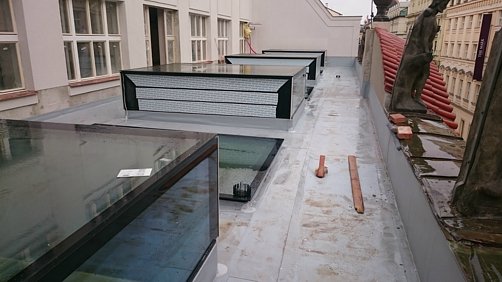 Velmi zajímavou rekonstrukci objektu Šporkovského paláce v Hybernské ulici na Novém Městě jsme zahájili v létě 2015. Naši realizaci provádíme pod společností Hinton a.s., která rekonstrukci zaštiťuje v pozici generálního dodavatele. Máme za sebou dokončené technicky zajímavé části plochých střech bývalého dvorního traktu a v současné době jsou postupně prováděny izolační práce dle stavební připravenosti.