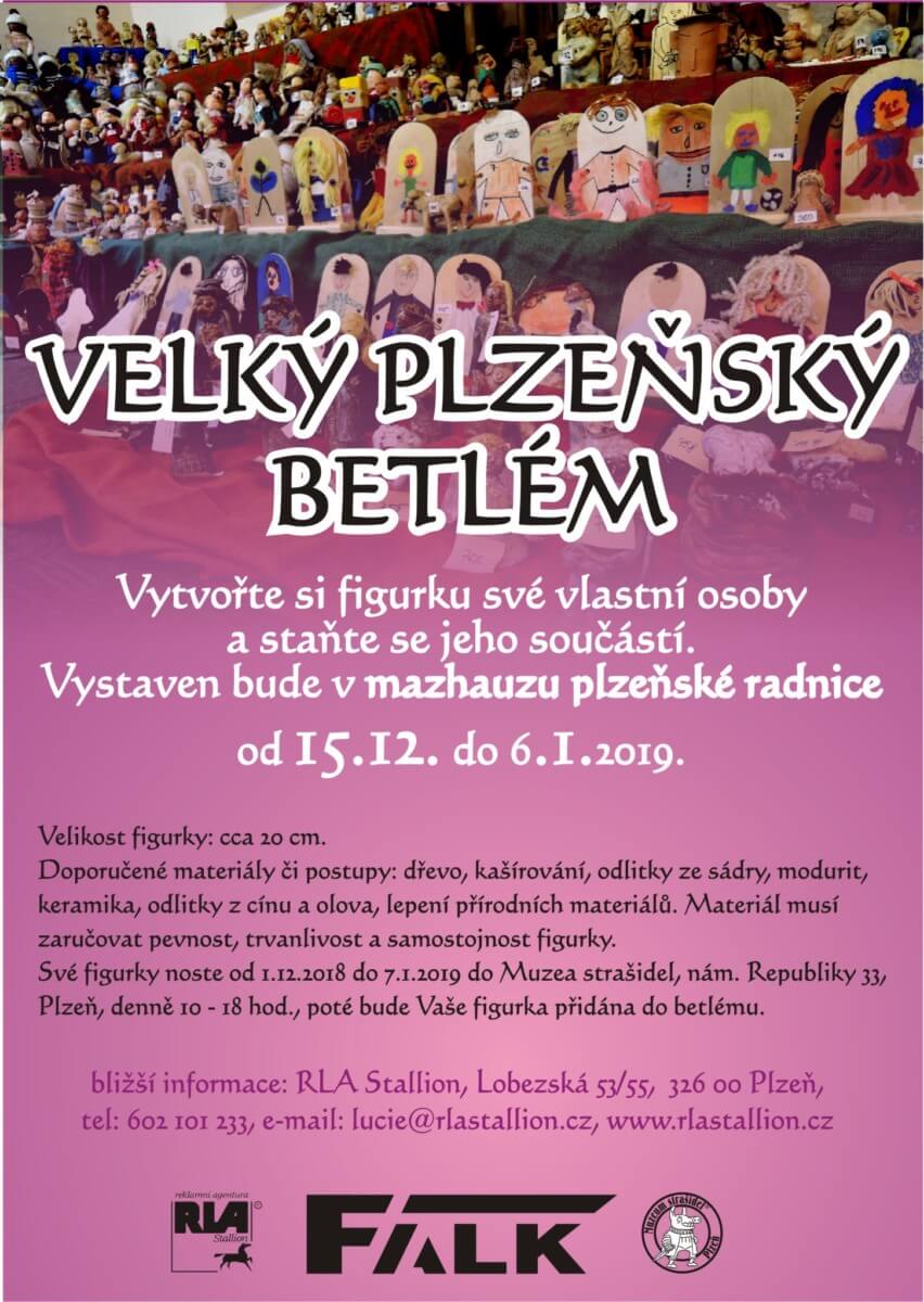 VELKÝ PLZEŇSKÝ BETLÉM 7.12.2018 Rádi jsme opět letos podpořili projekt Velkého plzeňského betlému. Držíme palce organizátorům při instalaci již rozsáhlého souboru figurek.